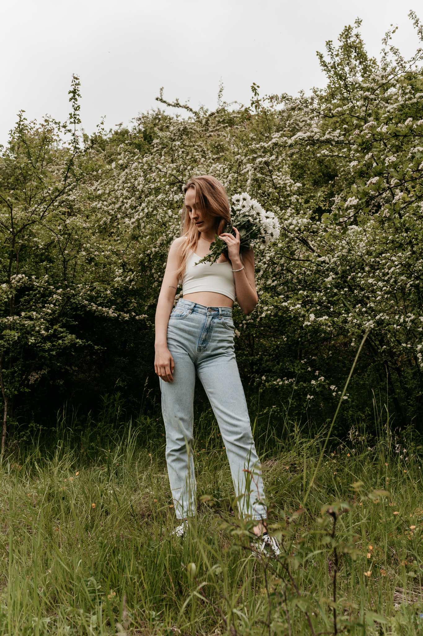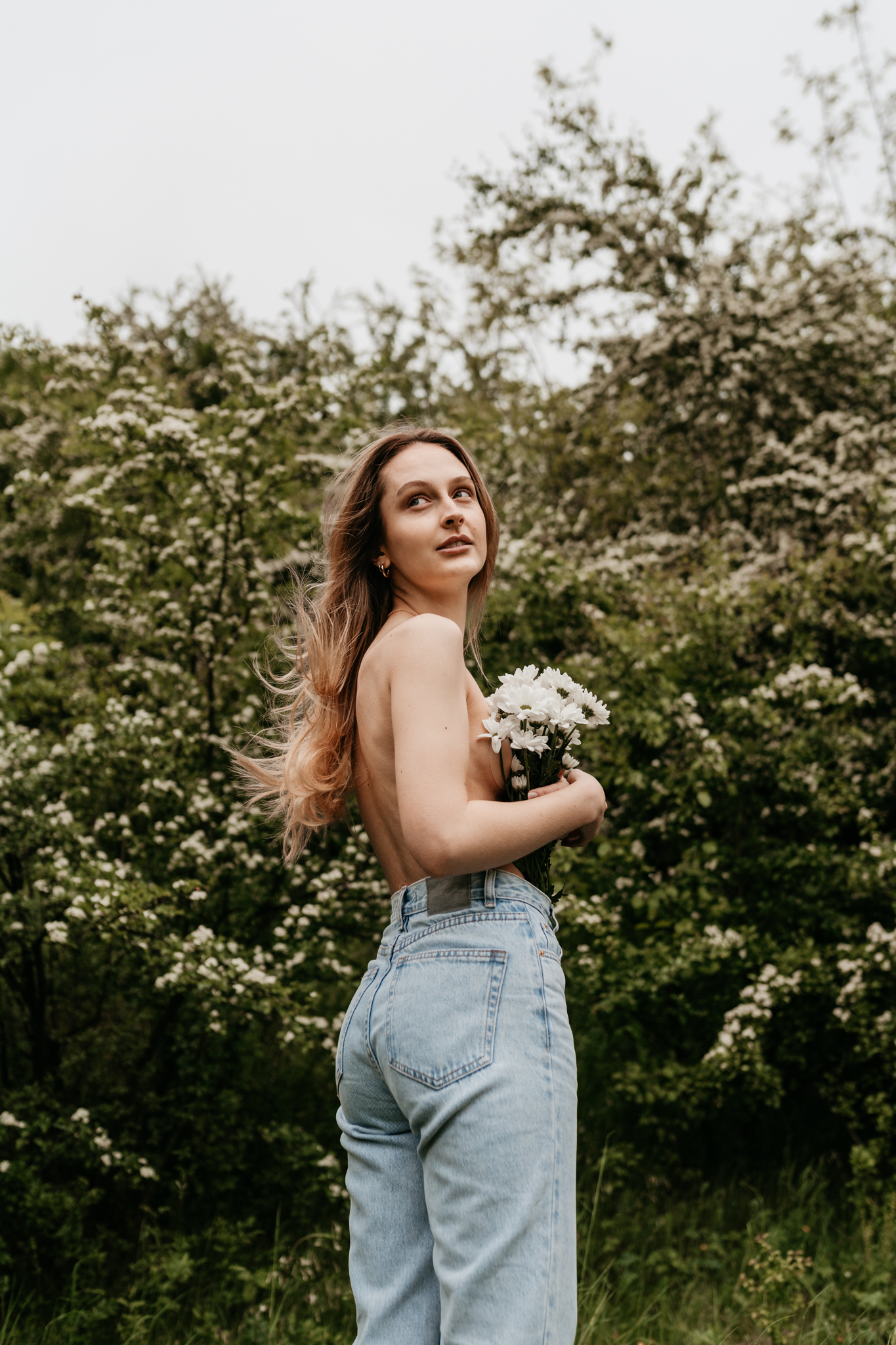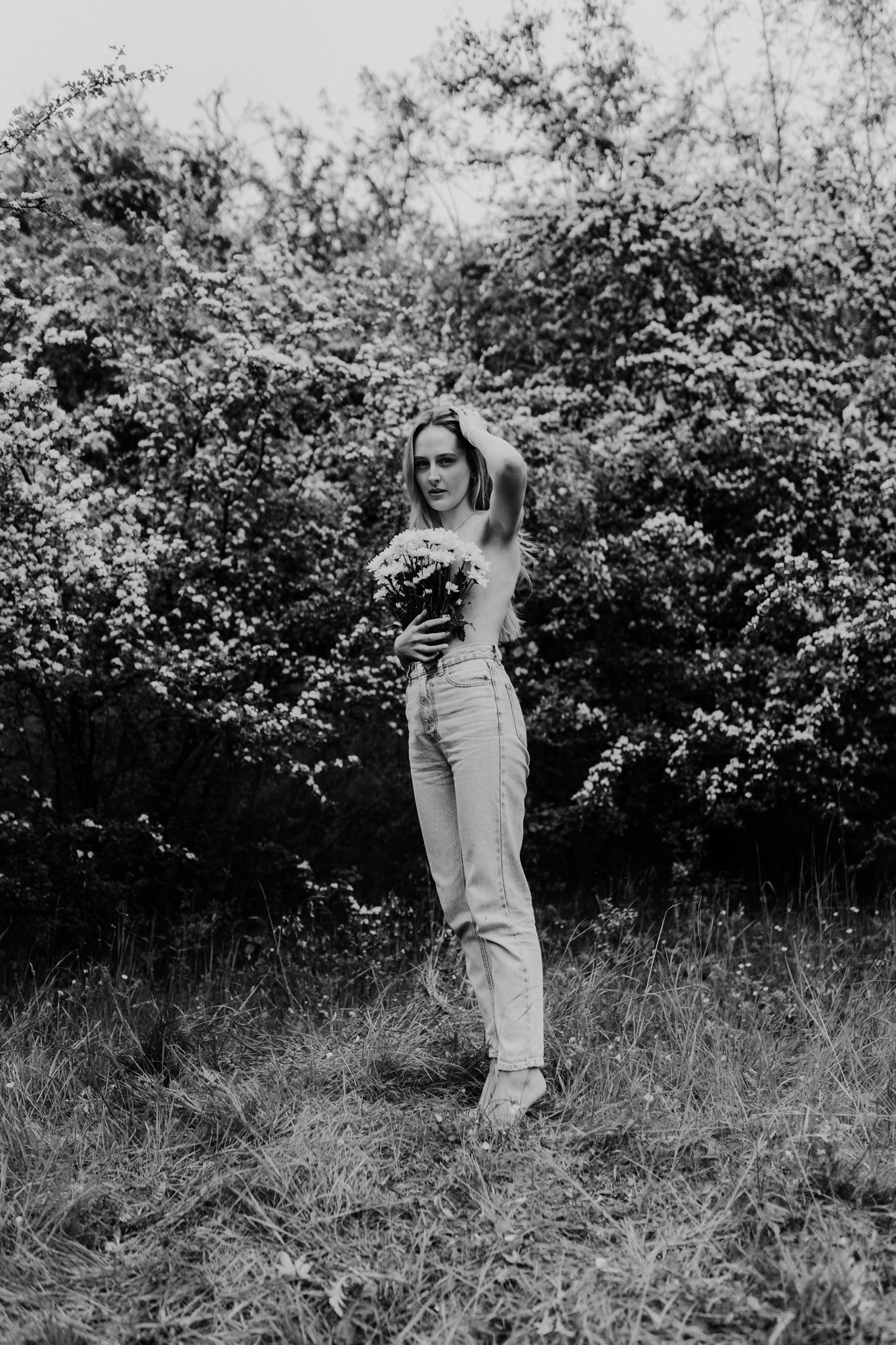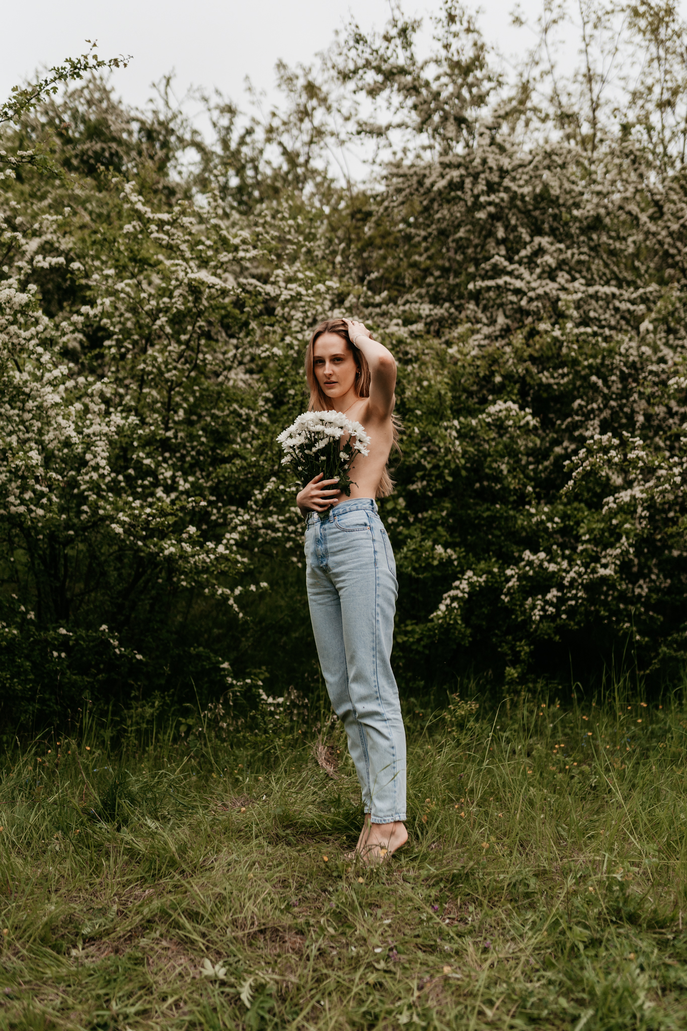 Kobieca sesja z kwiatami